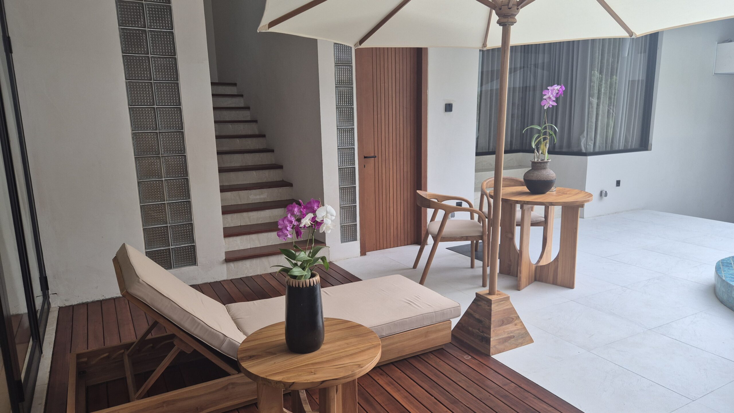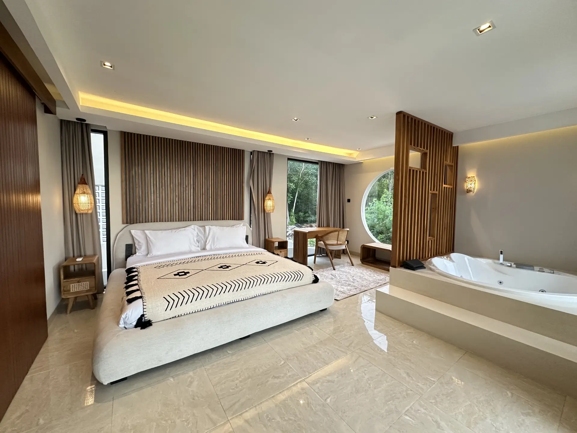 Every space is designed to embrace garden views, sky, and ocean, allowing uninterrupted connection with nature’s energy. From the master bedroom jacuzzi, the sky and ocean align at the perfect angle for deep relaxation, transforming each soak into a moment of pure serenity. The villa features a total living area of 265 square meters, thoughtfully designed across two levels.