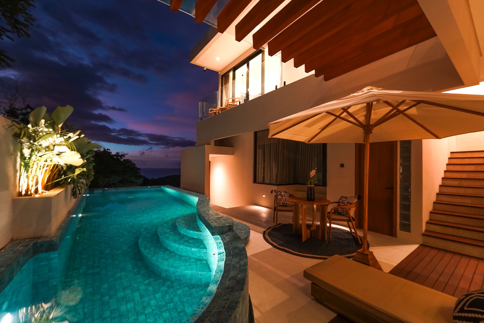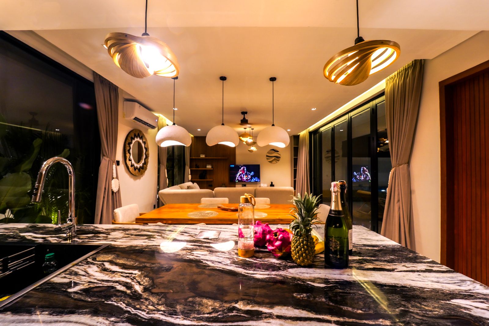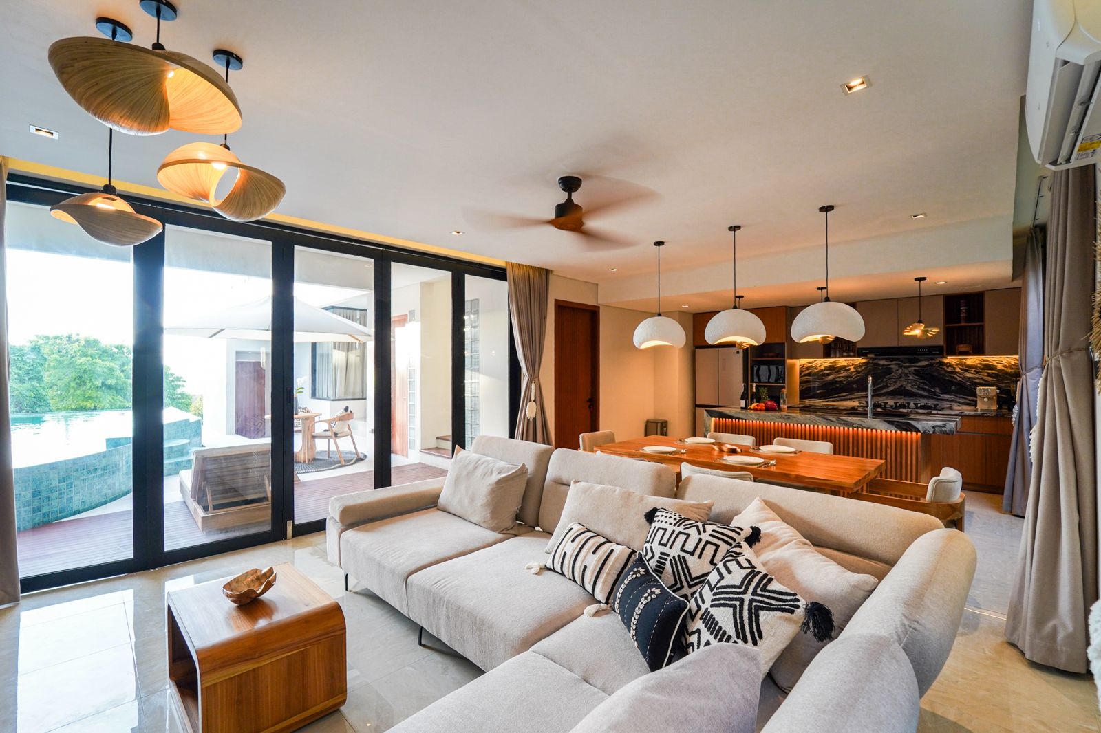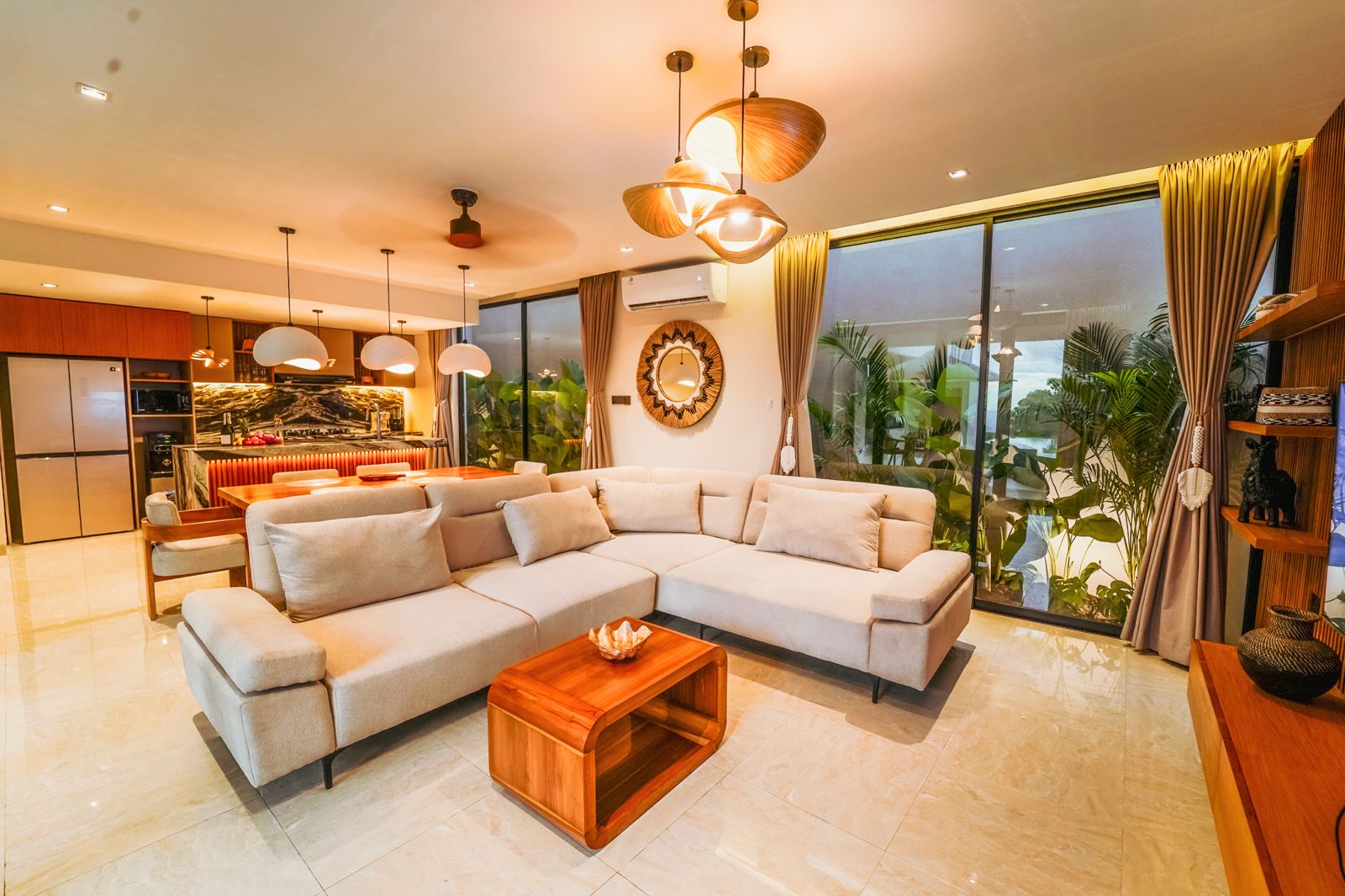 Natural light flows seamlessly through the villa, shifting gracefully from morning glow to moonlit reflections at night, creating an atmosphere that is both powerful and serene in perfect balance.